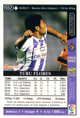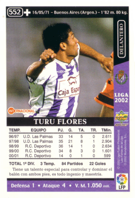 552.- Turu Flores (estadísticas erróneas: Total 1ª DIV. 14 Temp. 475 Partidos 78 Goles)