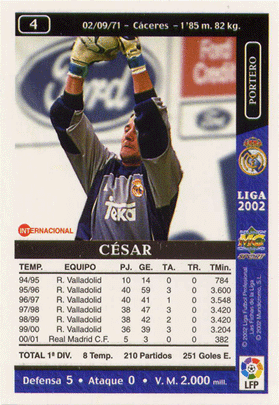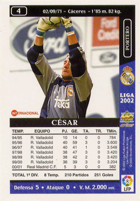 César (en el revers posa Goles en comptes de Goles E. -gols encaixats-