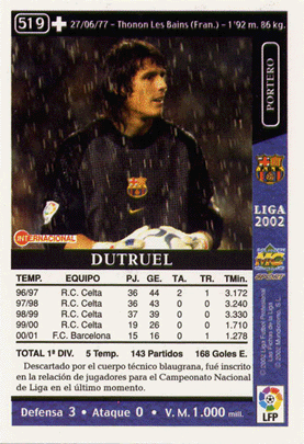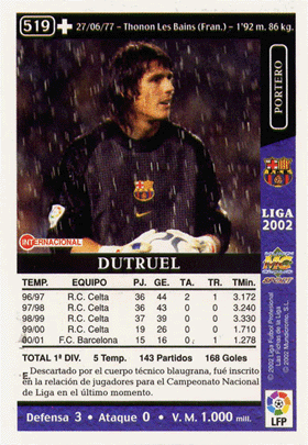 Dutruel (en el revers posa Goles en comptes de Goles E. -gols encaixats-