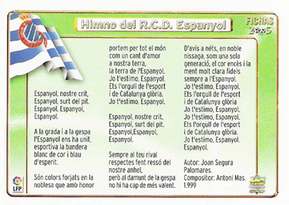 Alineació de l'Espanyol en castellà (va eixir amb l'escut